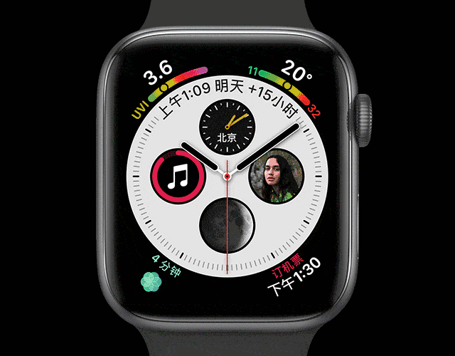 当然,你也不用太担心边框的问题,由于 Apple Watch Series 4 采用了 OLED 屏幕,再加上 watchOS 中的 UI 背景大多是黑色的,因此,你基本没什么机会看到边框。